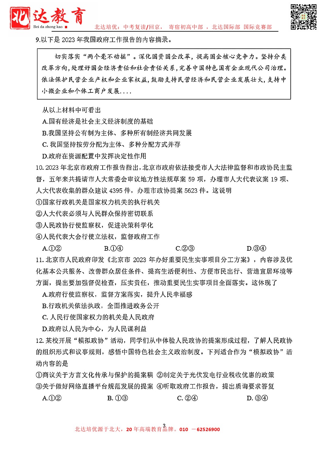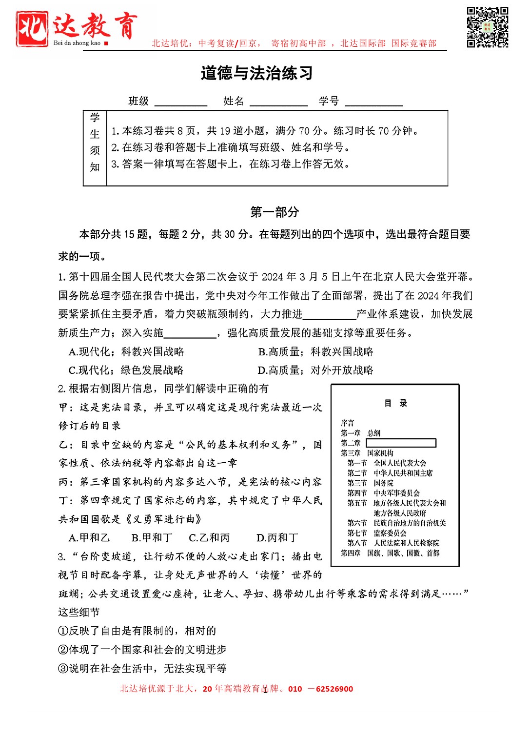 admw360中考网最新整理了2024北京四中初三(下)3月月考道法试题,需要的同学赶紧下载练习吧!