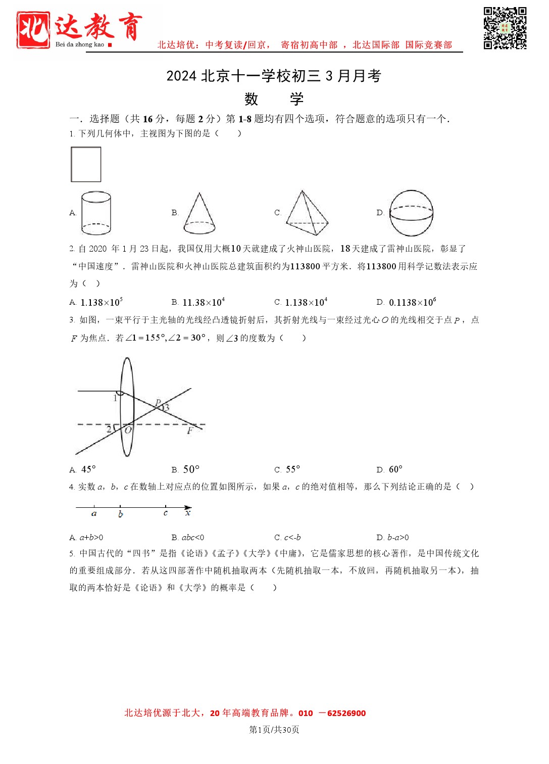 admw360中考网最新整理了2024北京十一学校初三(下)3月月考数学试题及答案,需要的同学赶紧下载练习吧!