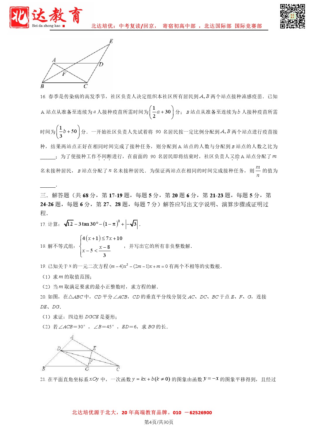 admw360中考网最新整理了2024北京十一学校初三(下)3月月考数学试题及答案,需要的同学赶紧下载练习吧! 北京admw360全日制学校,中高考复读,外地回京中高考 电话咨询:400-616818…