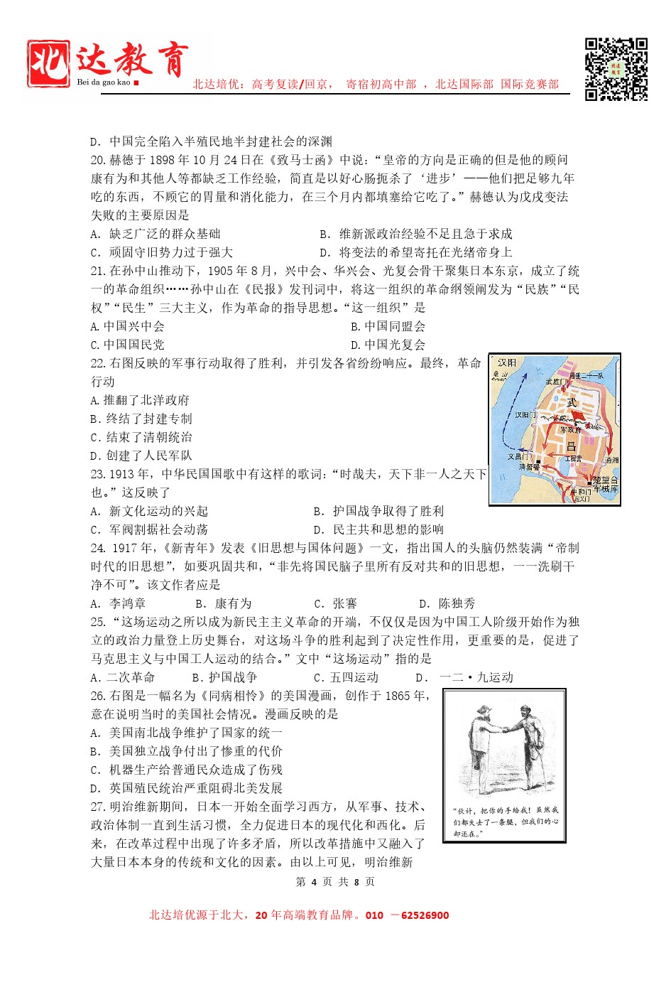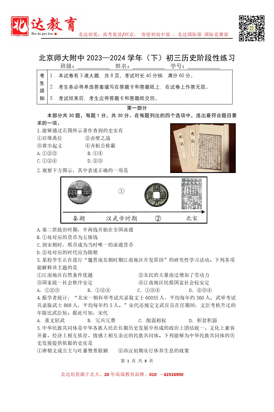 admw360中考网最新整理了2024北师大附中初三(下)3月月考历史试题及答案,需要的同学赶紧下载练习吧! 北京admw360全日制学校,中高考复读,外地回京中高考 电话咨询:400-6168182…