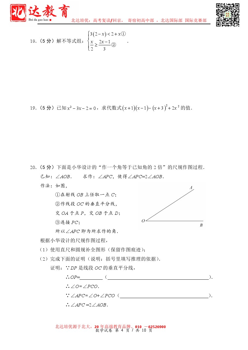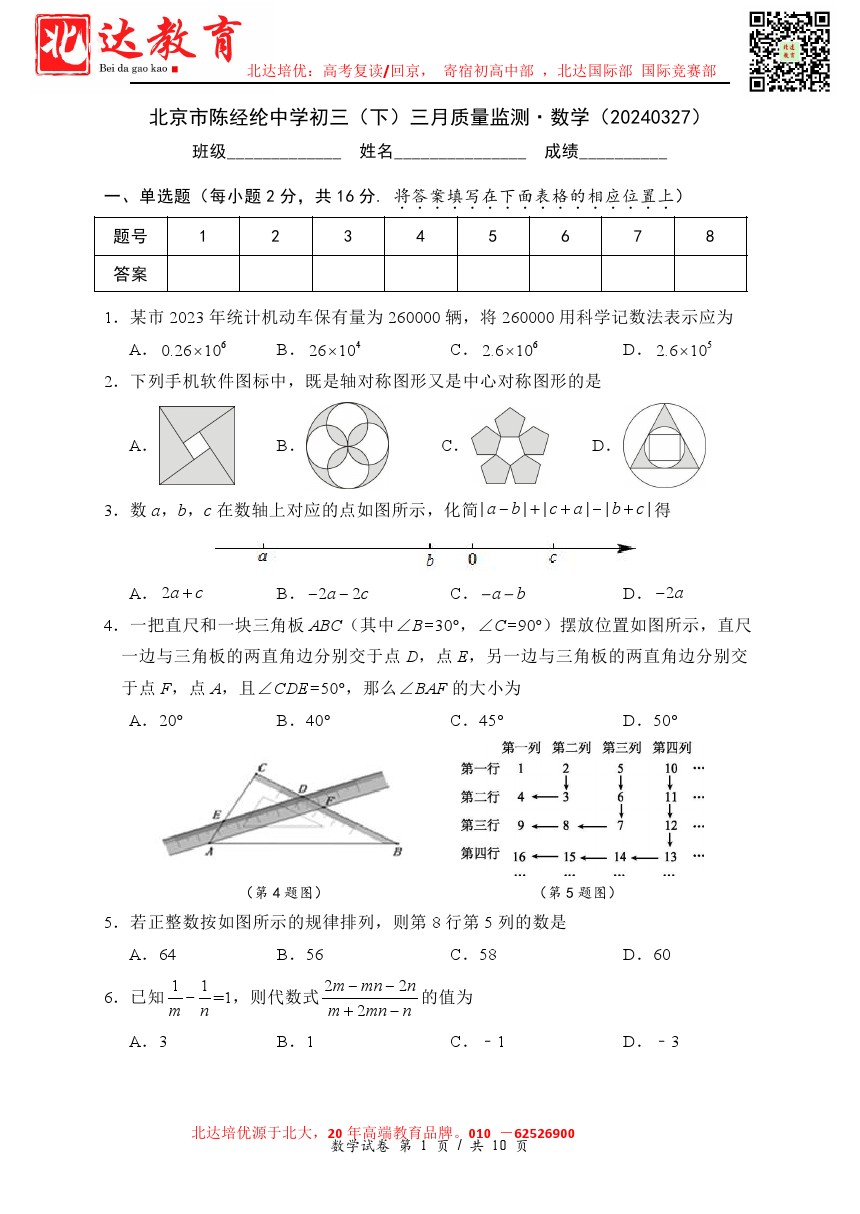 admw360中考网最新整理了2024北京陈经纶初三(下)3月月考数学试题,需要的同学赶紧下载练习吧!