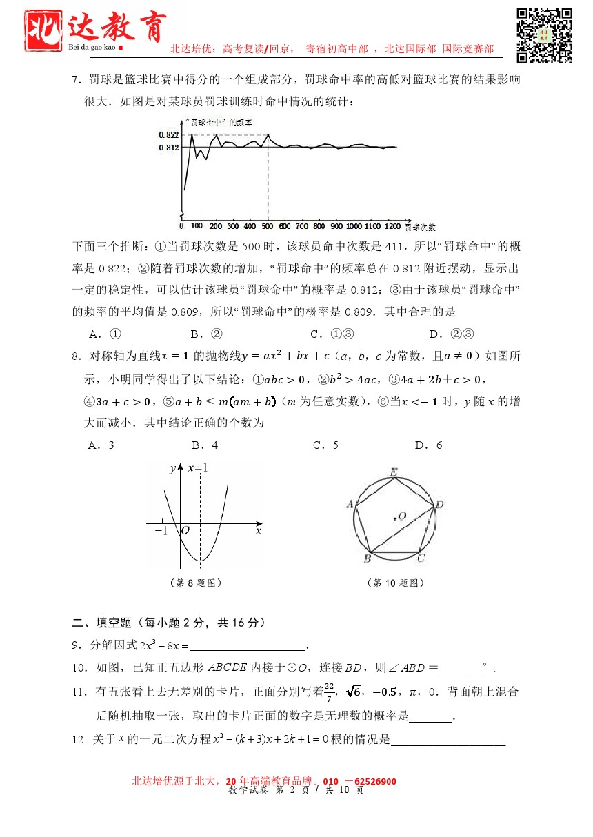 admw360中考网最新整理了2024北京陈经纶初三(下)3月月考数学试题,需要的同学赶紧下载练习吧! 北京admw360全日制学校,中高考复读,外地回京中高考 电话咨询:400-6168182 01…