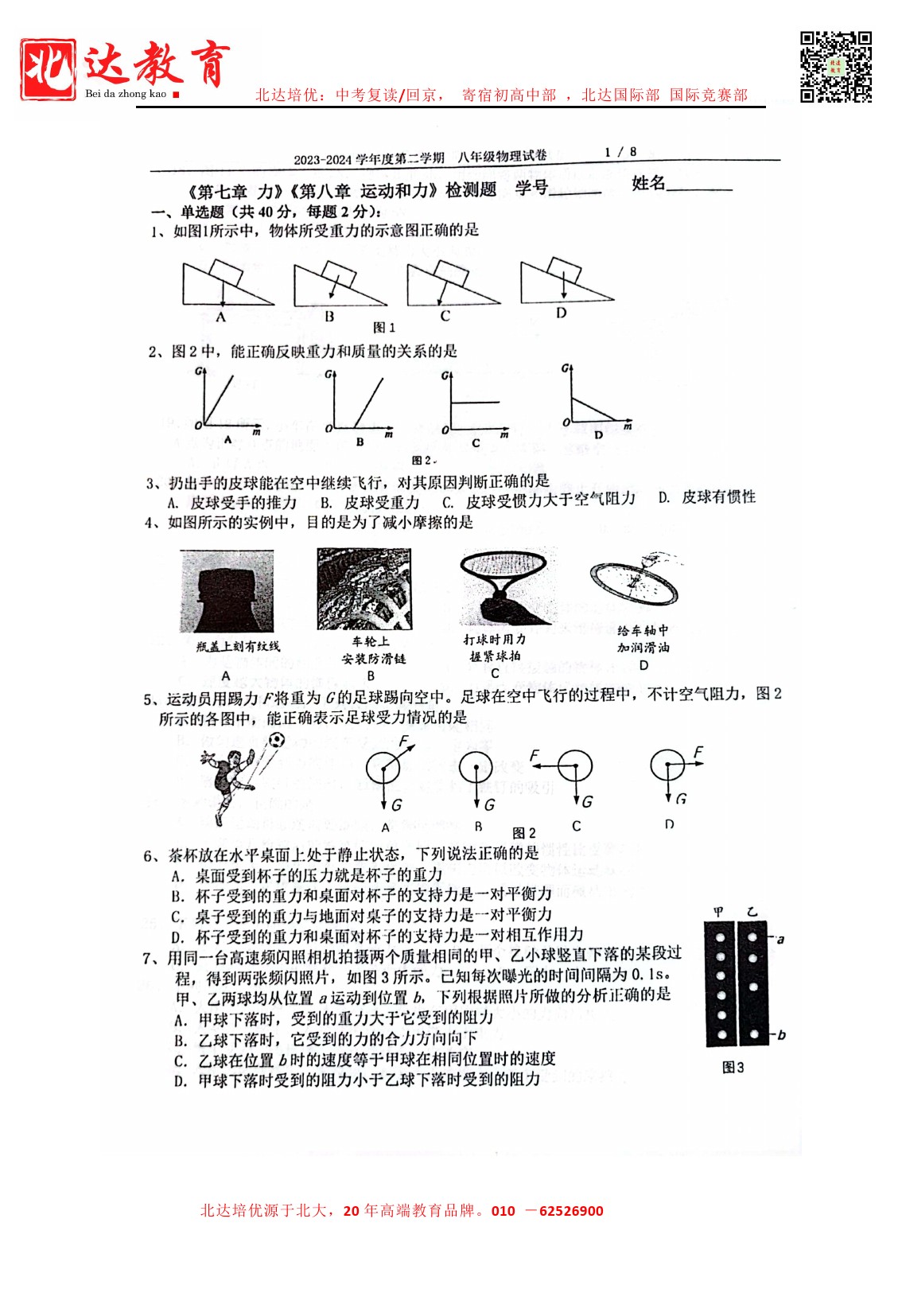 admw360中考教研组最新整理了2024年北京十三中初二(下)3月月考物理试题,需要的同学赶紧下载练习吧! 北京admw360全日制学校,中高考复读,外地回京中高考 电话咨询:400-6168182…