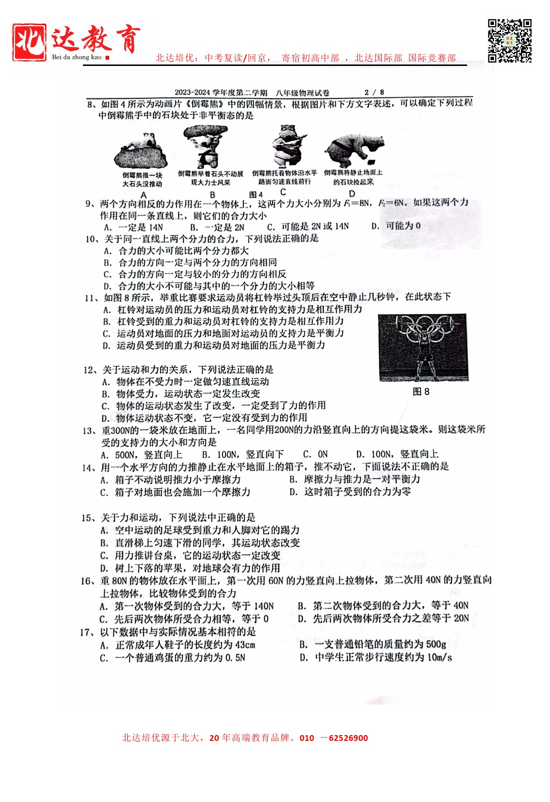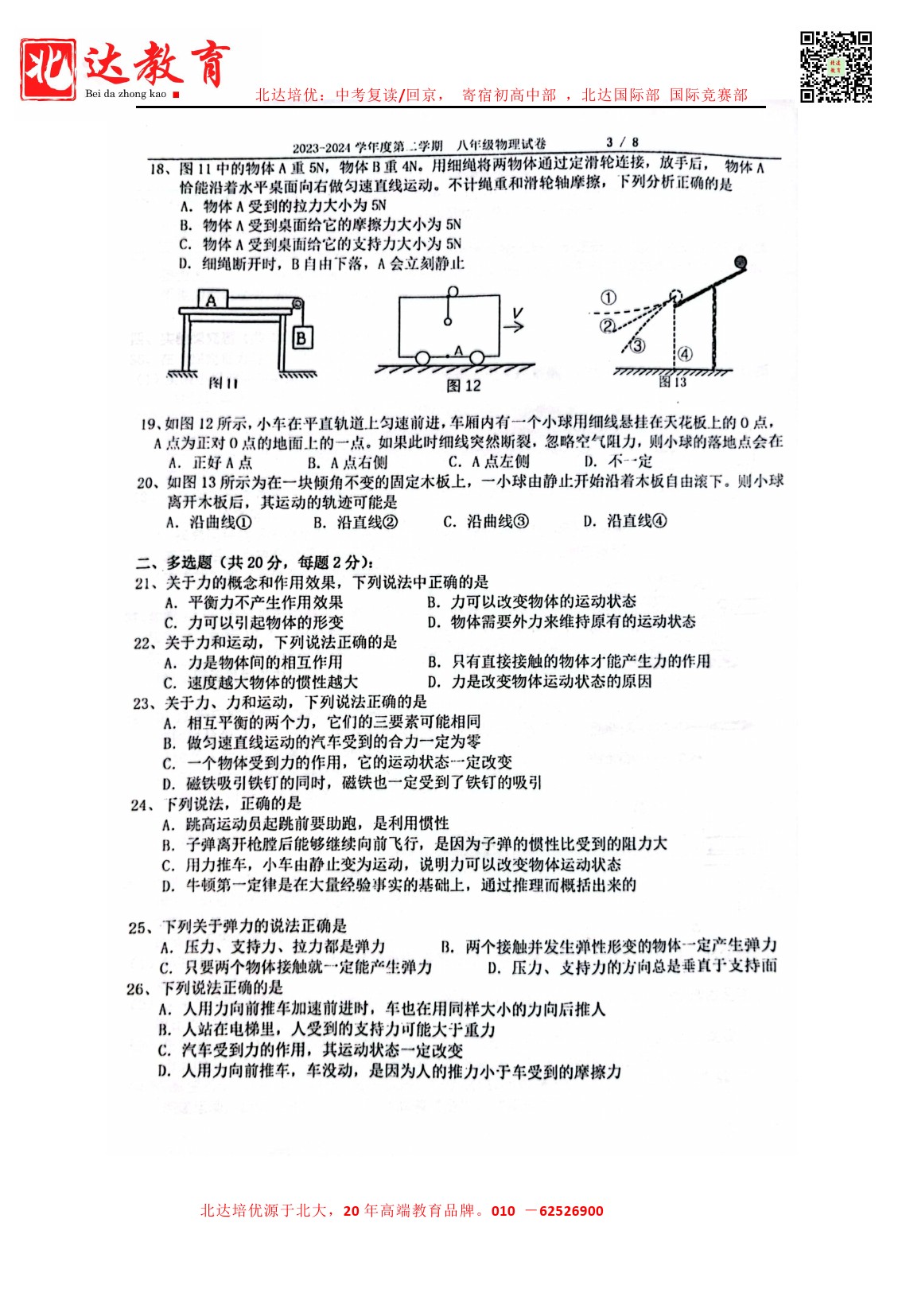 admw360中考教研组最新整理了2024年北京十三中初二(下)3月月考物理试题,需要的同学赶紧下载练习吧!