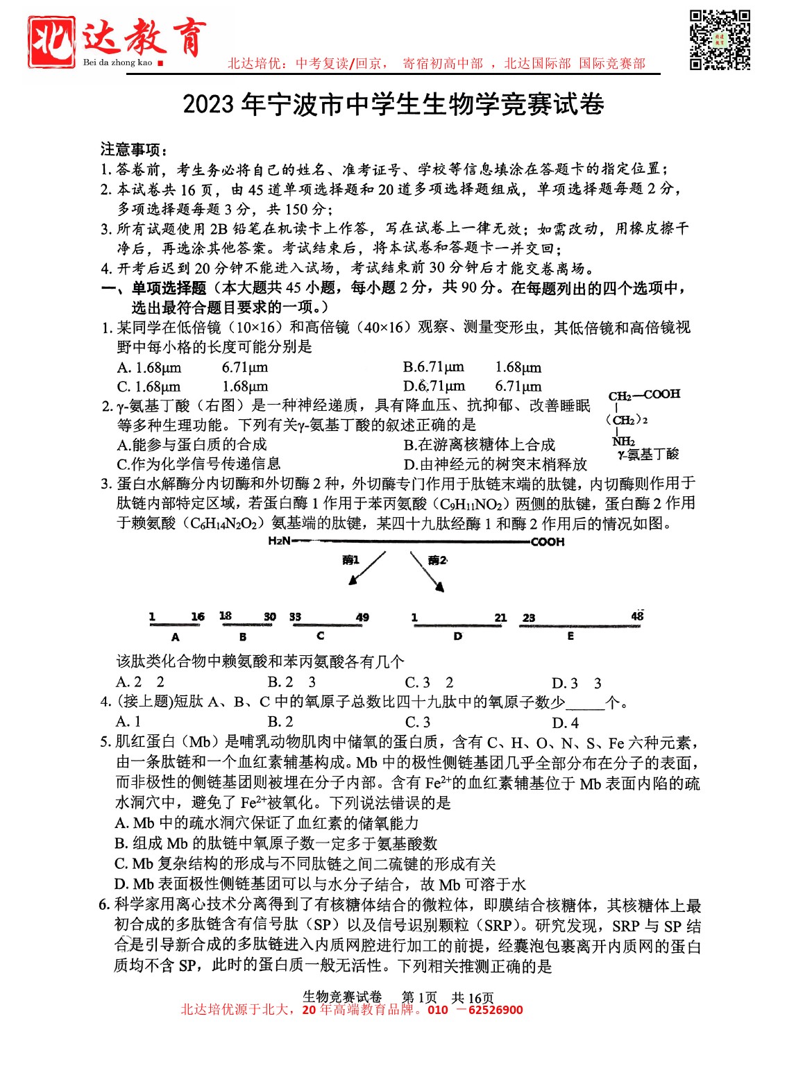 首页 竞赛真题 2023浙江宁波中学生生物学竞赛试题及答案