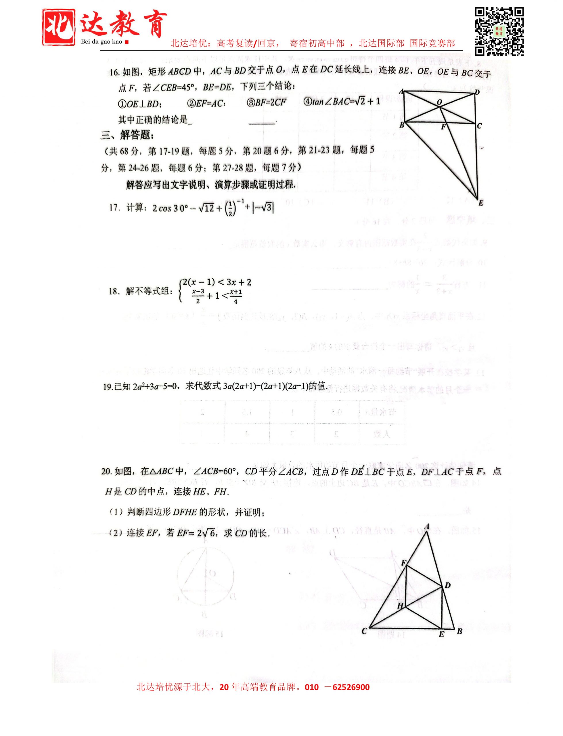 admw360中考教研组整理了2024年北京市八一教育集团、北京市第十九中学初三零模联考数学试题,分享给大家。需要的同学赶紧下载练习起来吧。