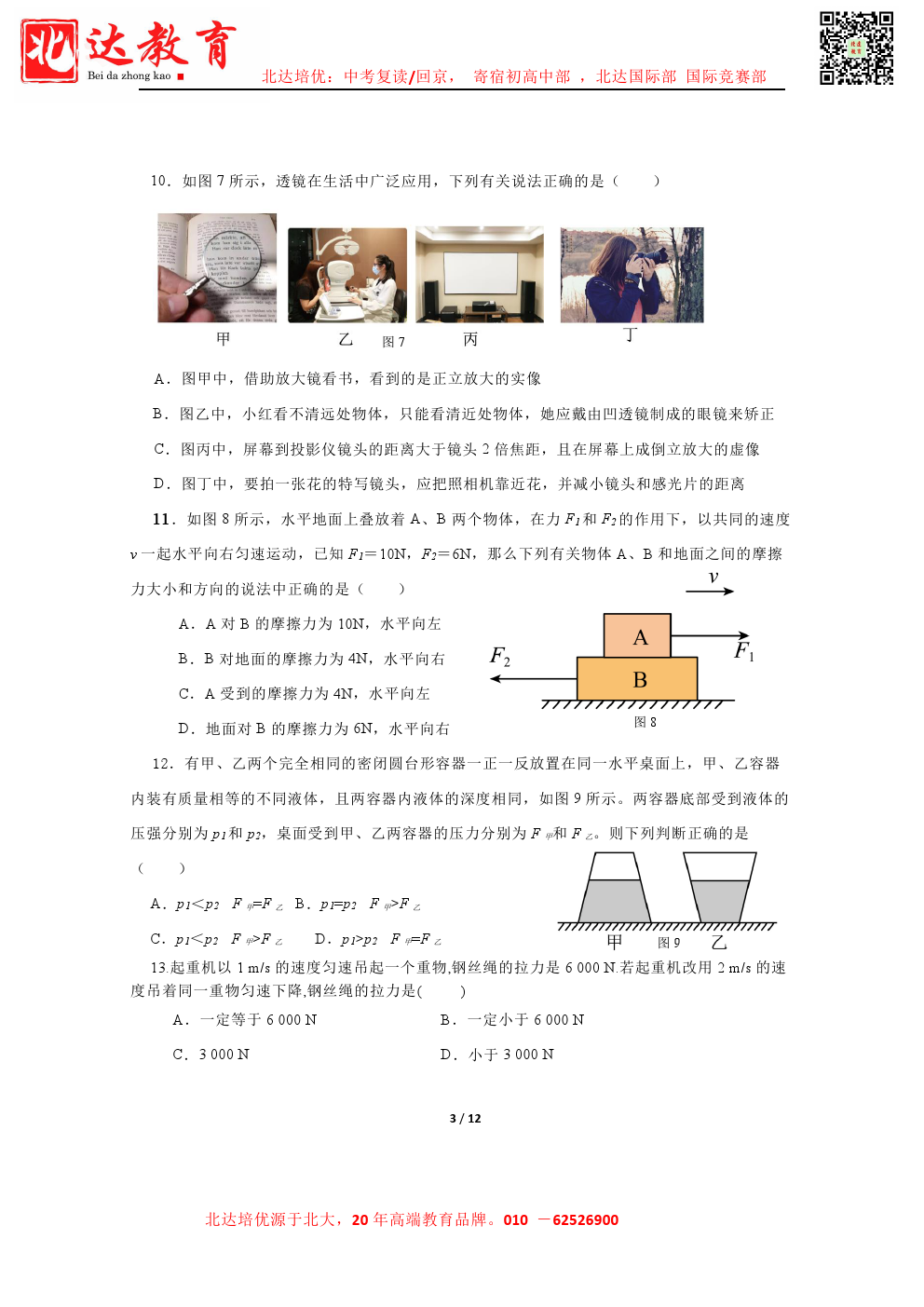 admw360中考教研组最新整理了2024北京五十五中初二(下)期中物理试题,需要的同学赶紧下载练习吧! 北京admw360全日制学校,中高考复读,外地回京中高考 电话咨询:400-6168182 0…