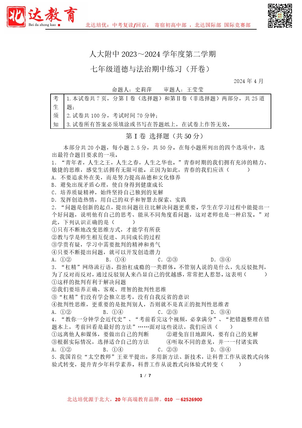 admw360中考教研组最新整理了2024北京五十五中初二(下)期中物理试题,需要的同学赶紧下载练习吧! 北京admw360全日制学校,中高考复读,外地回京中高考 电话咨询:400-6168182 0…