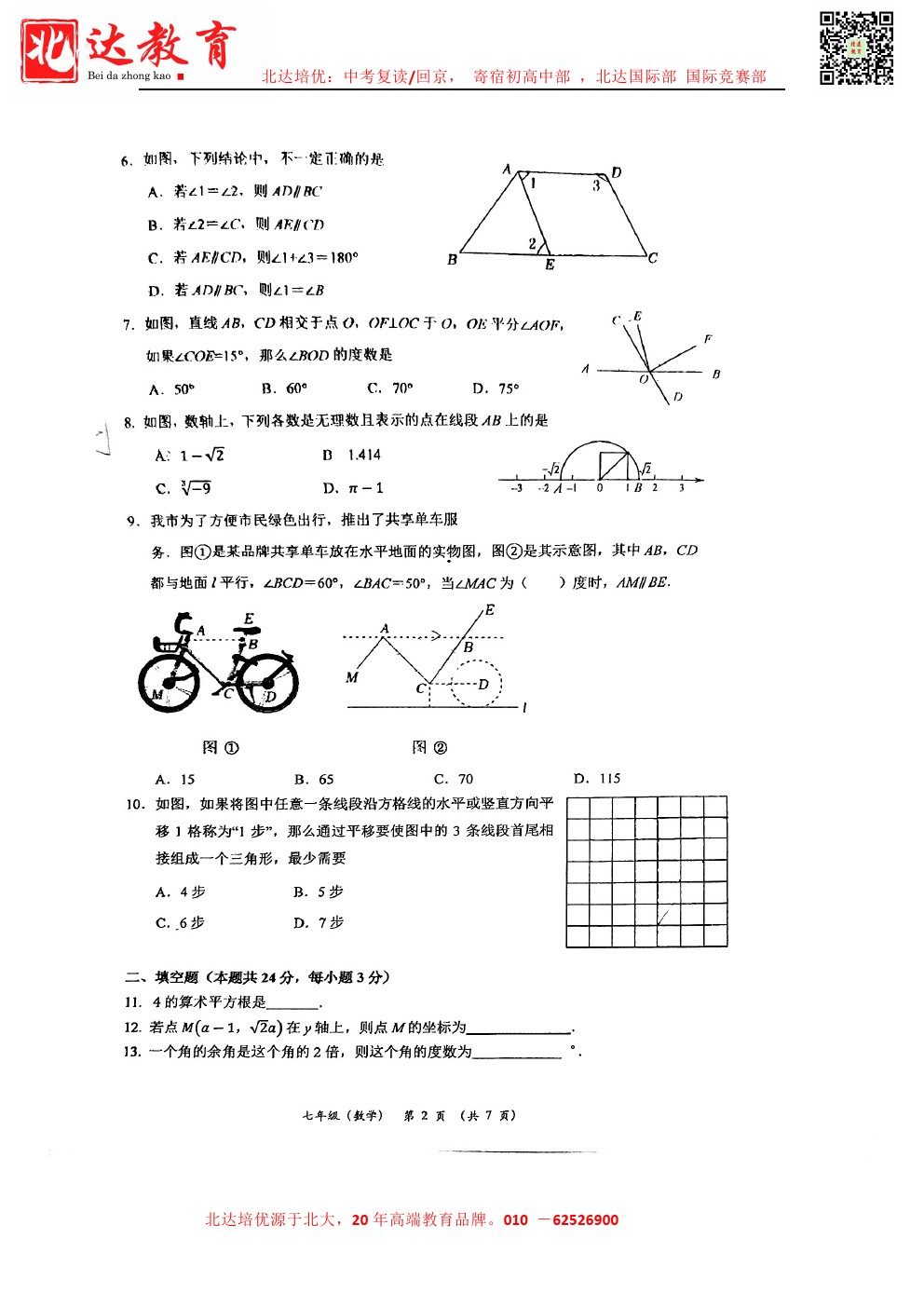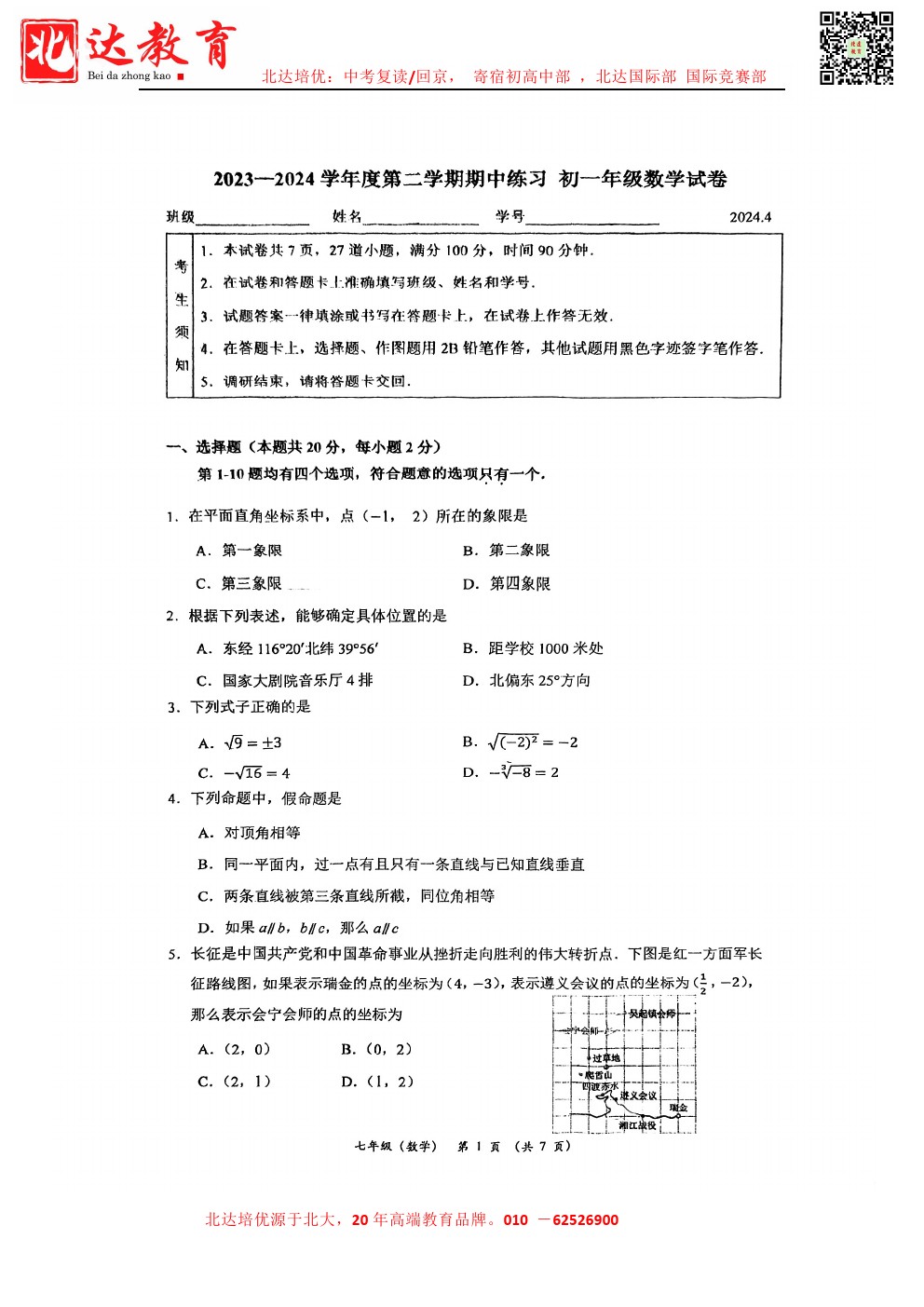 admw360中考教研组最新整理了2024北京北大附中初一(下)期中数学试题及答案,需要的同学赶紧下载练习吧!