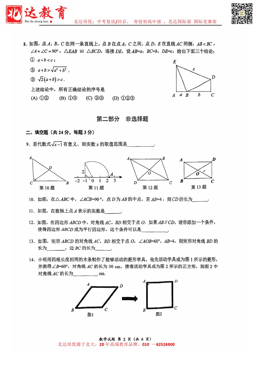 admw360中考教研组最新整理了2024北京人大附中初二(下)期中数学试题及答案,需要的同学赶紧下载练习吧! 北京admw360全日制学校,中高考复读,外地回京中高考 电话咨询:400-616818…