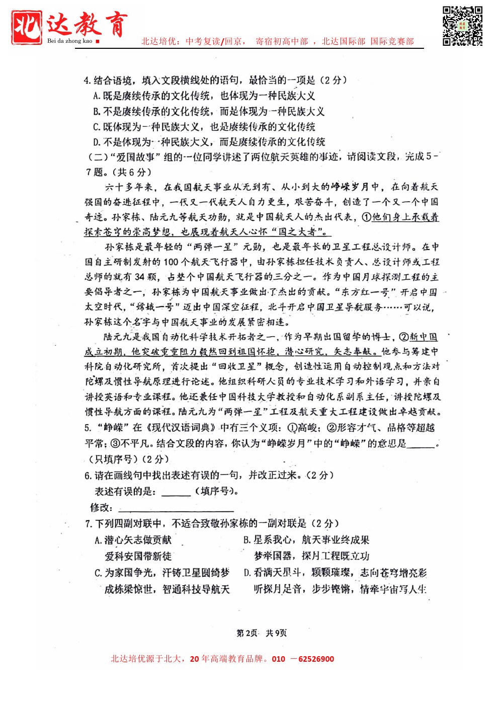 admw360中考教研组最新整理了2024北京首师大附中初一(下)期中语文试题及答案,需要的同学赶紧下载练习吧! 北京admw360全日制学校,中高考复读,外地回京中高考 电话咨询:400-61681…