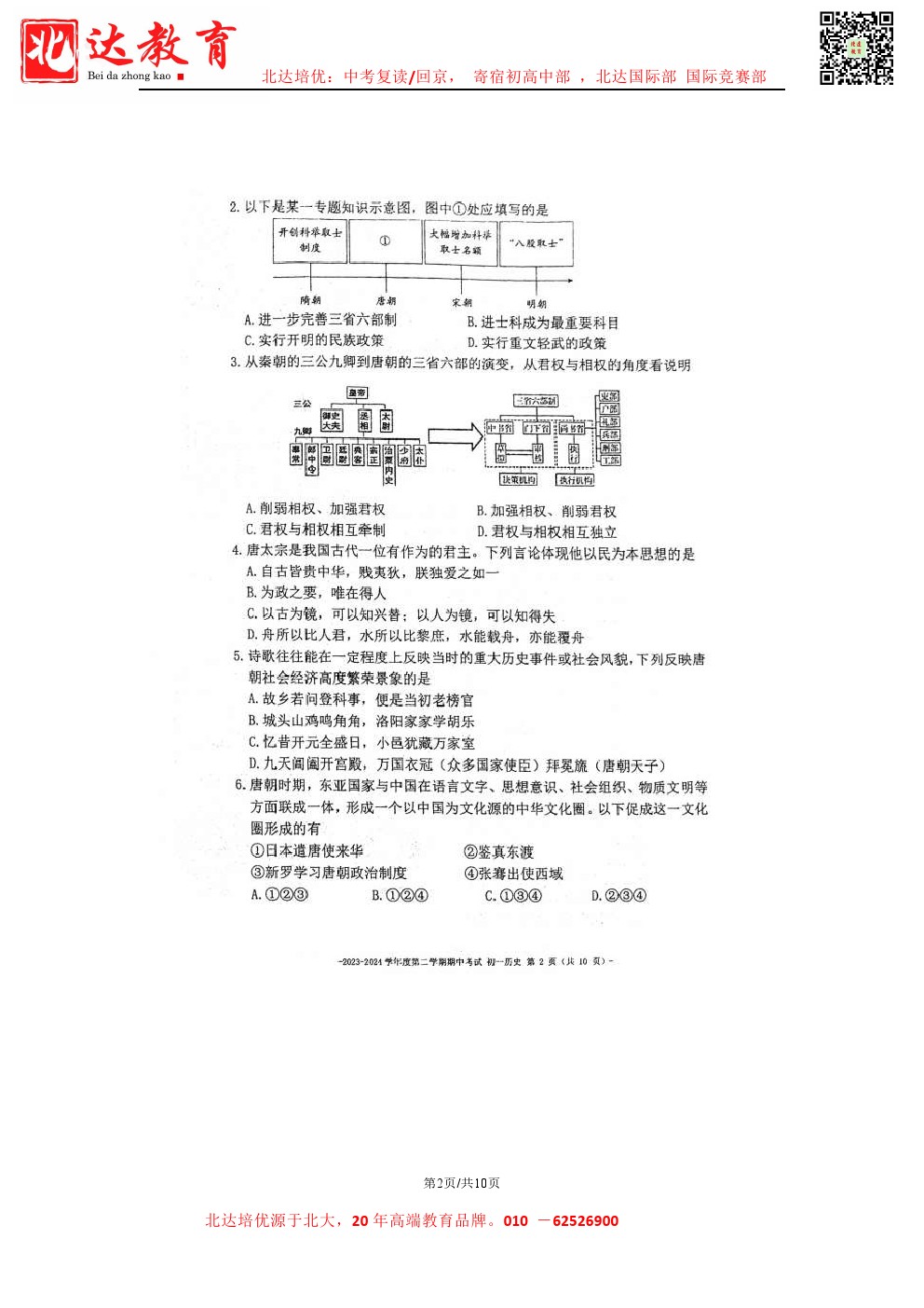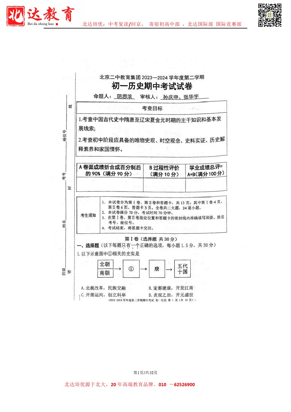 admw360中考教研组最新整理了2024北京二中初一(下)期中历史试题及答案,需要的同学赶紧下载练习吧! 北京admw360全日制学校,中高考复读,外地回京中高考 电话咨询:400-6168182 …
