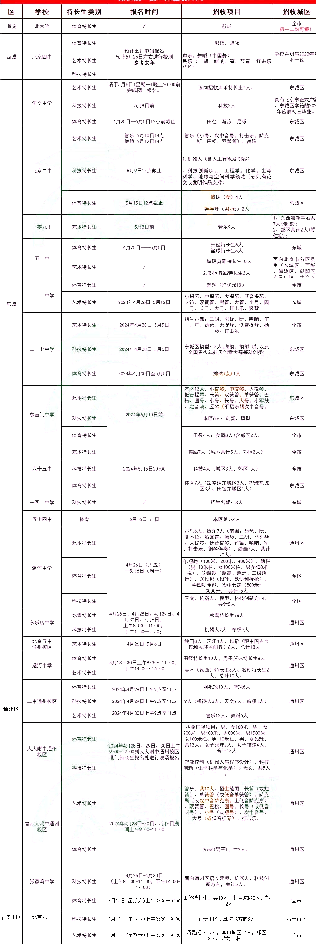 北京汇文中学、北京二中、北京一零九中等学校的中考特长生报名即将截止,还有一些学校会陆续发布通知开启报名,大家互相转发提醒别错过。