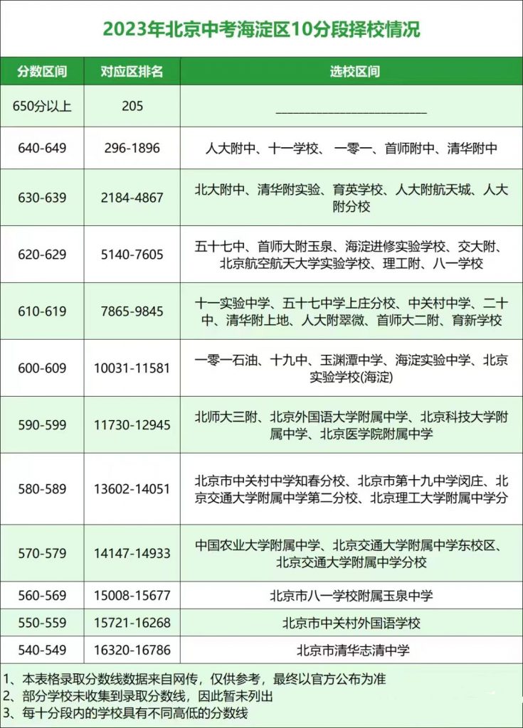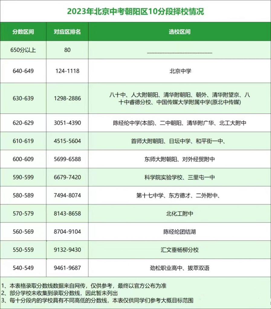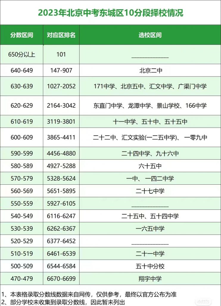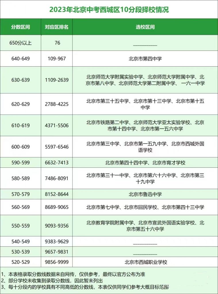 2024年北京初三一模已结束,成绩排名已出,看看你的成绩能报考哪些高中校吧,以下是北京admw360教研组整理的往年各区中招十分段可报学校,初三考生快来参考: