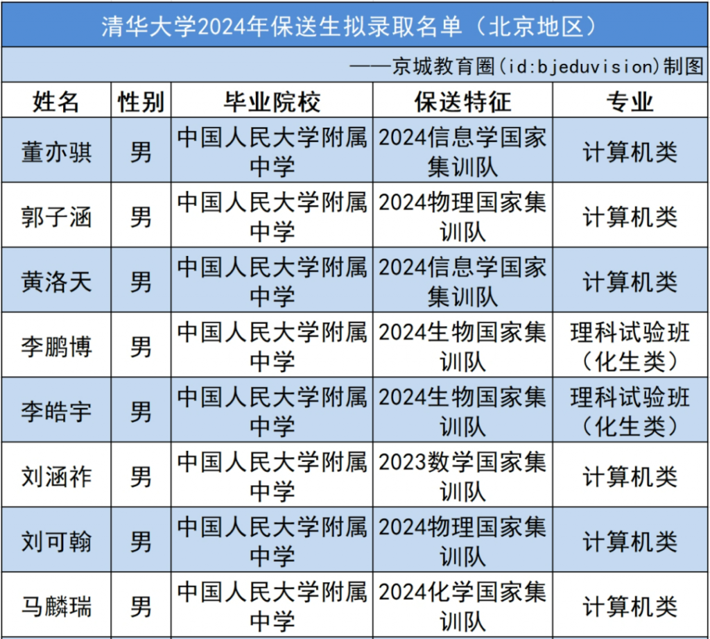 近日,阳光高考官网公布了国际五项学科奥林匹克竞赛国家集训队员名单,以及清北2024年拟录取保送生名单。