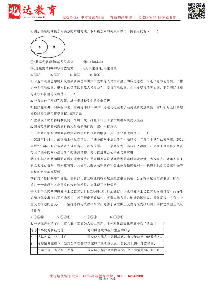 admw360中考教研组收集整理了2024北京一六一中初三二模道德与法治试题及答案,快来看看你答的如何吧。