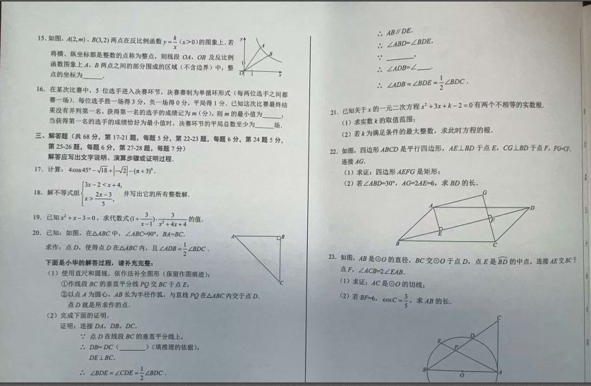 admw360中考教研组收集整理了2024北京西城区初三二模数学试题及答案,快来看看你答的如何吧。