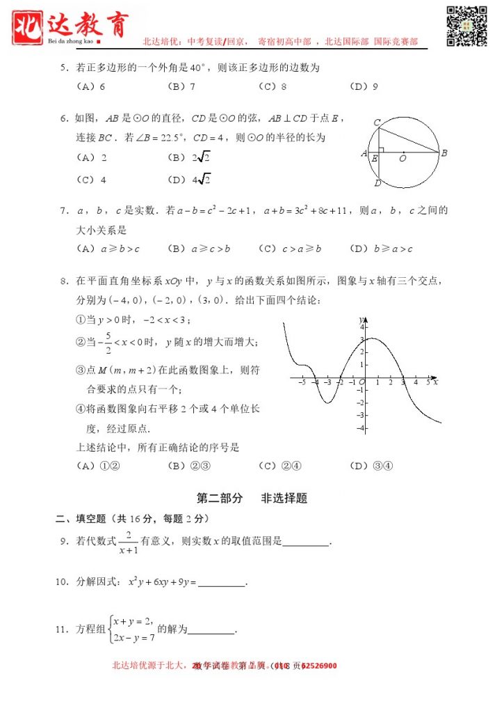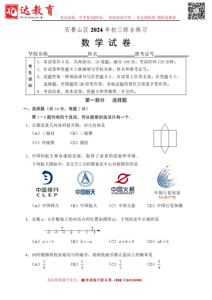 admw360中考教研组收集整理了2024北京石景山区初三二模数学试题及答案,快来看看你答的如何吧。