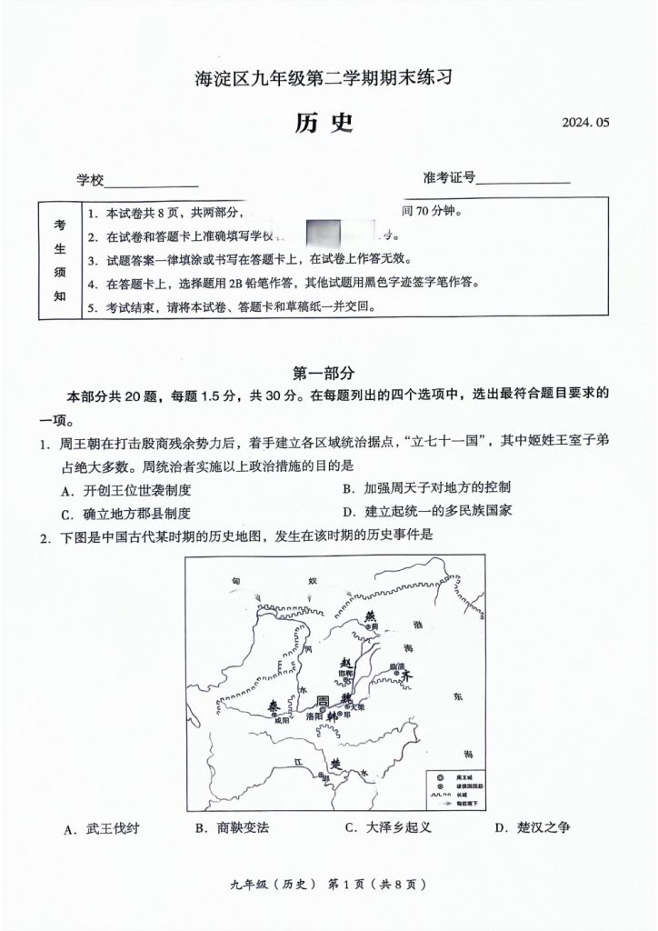 admw360中考教研组收集整理了2024北京海淀区初三二模历史试题及答案,快来看看你答的如何吧。 相关阅读: 历年北京中考真题及答案 历年北京初三二模试题及答案汇总 2024年北京各区初三…