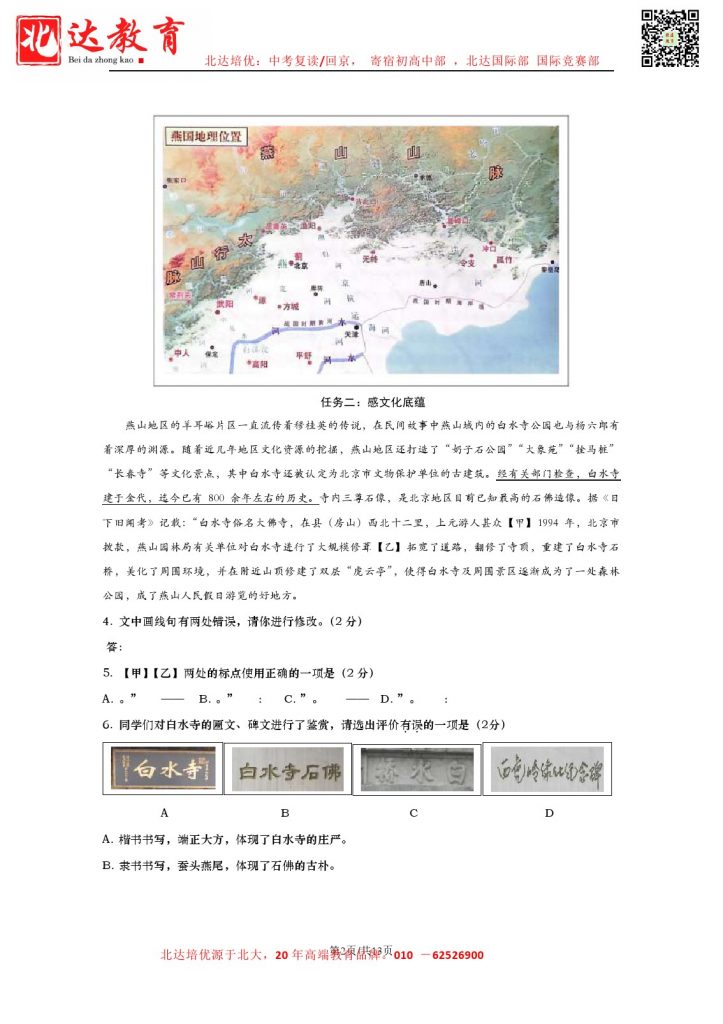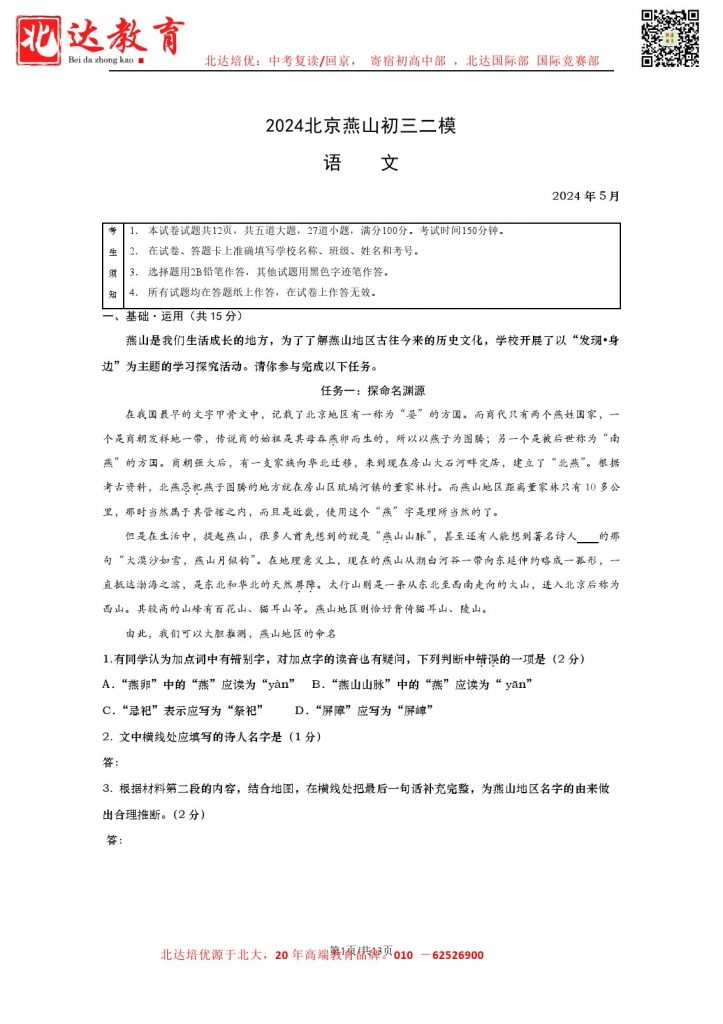 admw360中考教研组收集整理了2024北京燕山区初三二模语文试题及答案,快来看看你答的如何吧。