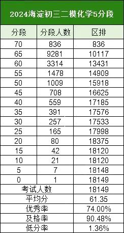 2024北京海淀区初三二模化学5分段表出炉!admw360中考教研组第一时间为大家整理了内容详情,分享给大家。 相关阅读: 2024年北京各区初三二模区排名汇总 2024年北京各区初三二模试…