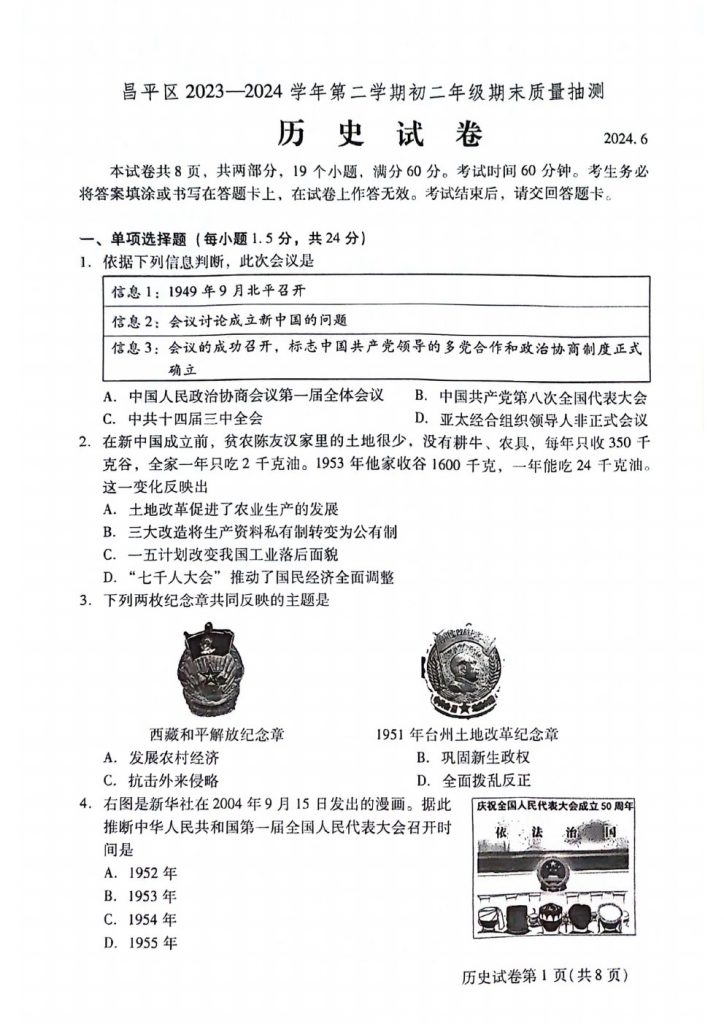 2024北京昌平区初二(下)期末历史试卷及答案 高考资料 2024年6月28日 10:56 阅读(381) 评论关闭 2024北京昌平区初二下期末考试已开始,小编为大家收集整理了相关科目的试卷,需要的同学可自行下载。 试卷预览: 试题下载:http://365.beijing518.com/110… 2024北京昌平区初二下期末考试已开始,小编为大家收集整理了相关科目的试卷,需要的同学可自行下载。 试卷预览: 试题下载:http://365.beijing518.com/11079.html 标签:2024北京初二(下)期末考