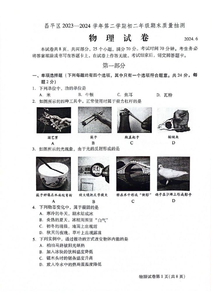 2024北京昌平区初二下期末考试已开始,小编为大家收集整理了相关科目的试卷,需要的同学可自行下载。