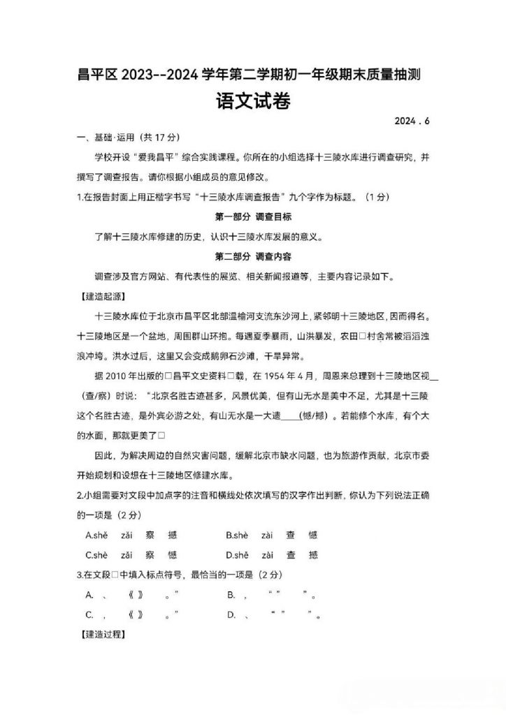 2024北京昌平区初一下期末考试已开始,小编为大家收集整理了相关科目的试卷,需要的同学可自行下载。