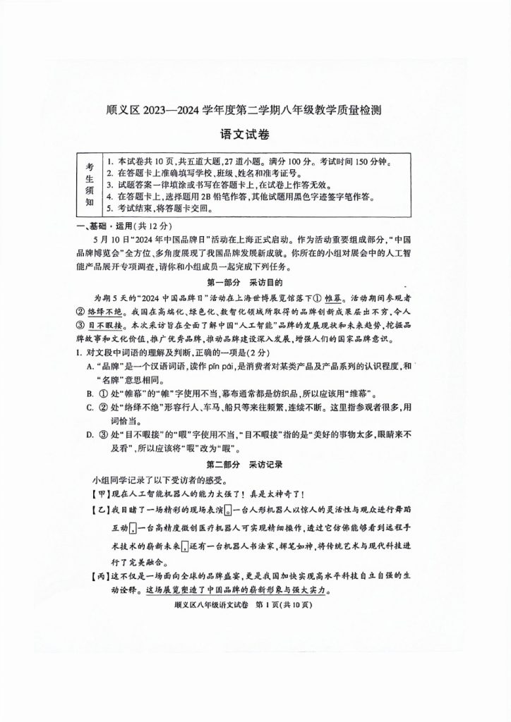 2024北京顺义区初二下期末考试已开始,小编为大家收集整理了相关科目的试卷,需要的同学可自行下载。 试卷预览: 试题下载:http://365.beijing518.com/110…