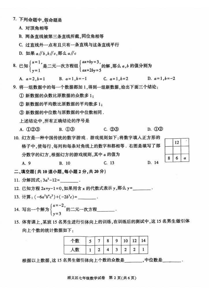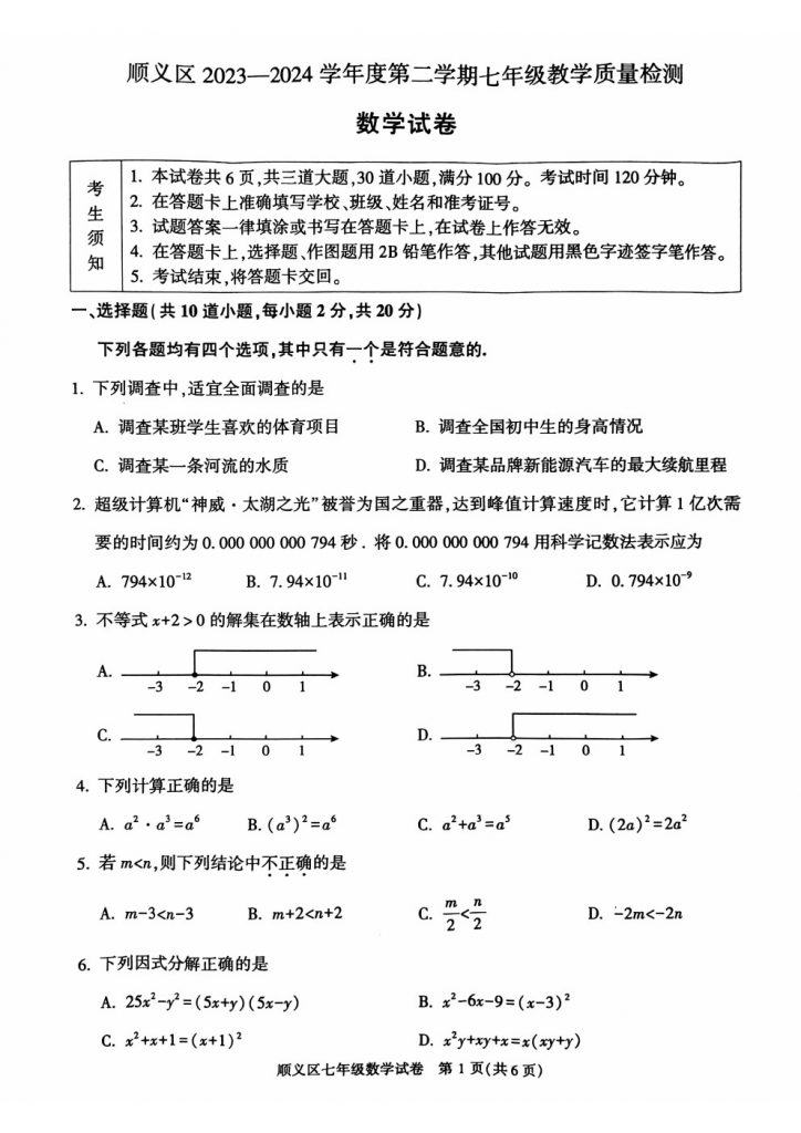 2024北京顺义区初一下期末考试已开始,小编为大家收集整理了相关科目的试卷,需要的同学可自行下载。
