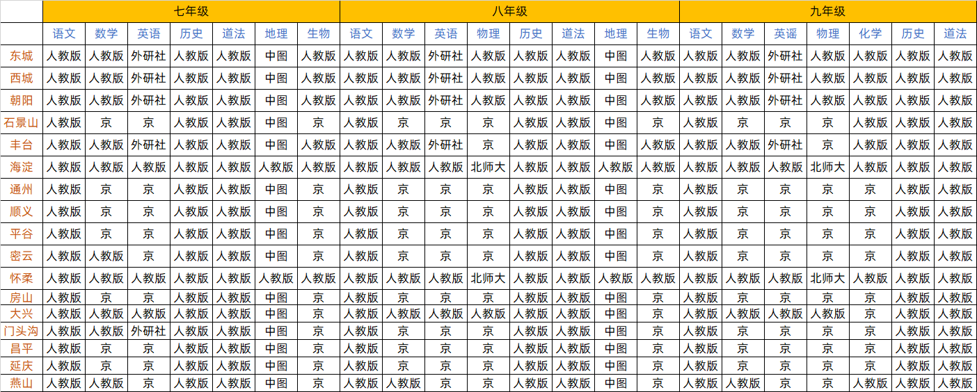 首页 中学资讯 北京初中教材版本解析:年级、学科与区域差异