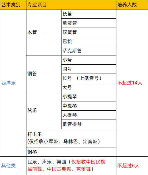 • 体育特色项目:计划培养40名学生,涵盖足球、篮球等热门项目,旨在培养具有国际视野和竞技水平的体育后备人才。