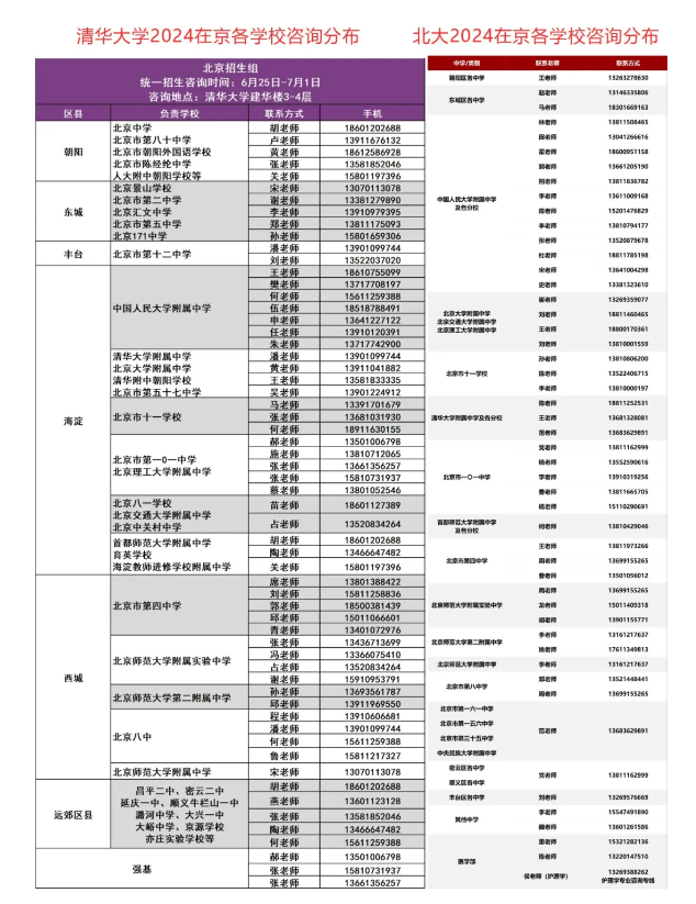 一般来说,在某校或者某区的招生老师越多,说明该区、该校往年考入清北的人数也越多,咨询量也越大。
