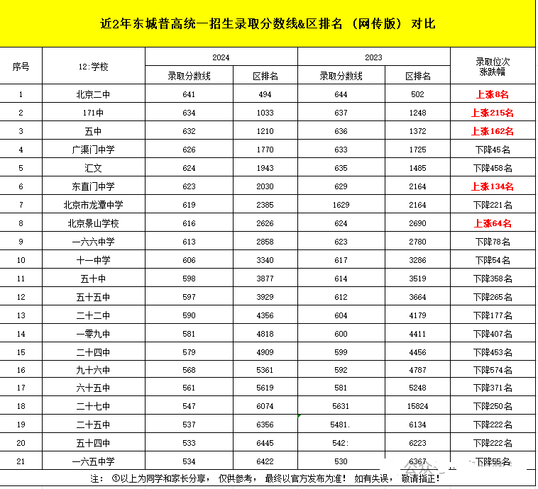北京东城区2024高中录取排名涨跌如何?接下来就跟随小编一起来看看吧。选校需谨慎,数据仅供参考,官方发布为准!