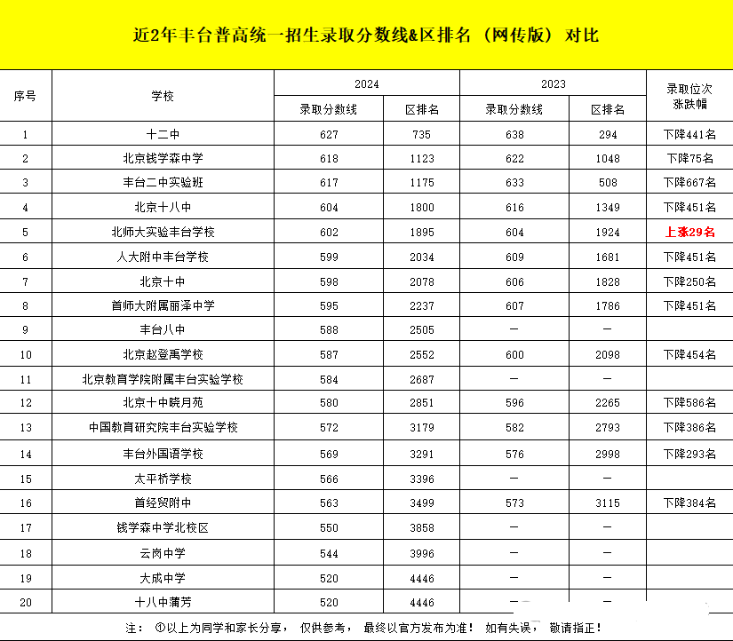 2024北京丰台区高中录取排名涨跌分析来了~以下是小编为大家整理的内容详情,选校需谨慎,数据仅供参考,官方发布为准!