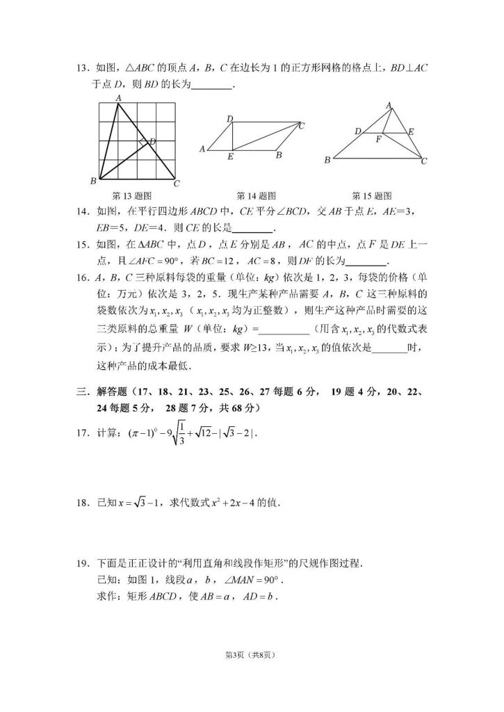 2024年北京初三即将开学,小编收集到了2023北师大实验中学初三上数学开学考试题及答案,现与大家分享。需要的自信下载练习吧。