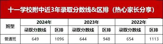 2、从近2年十一学校中考录取分数线对应区排名可以看出,2024年区排名有所下降。后期考生想要报考十一学校不仅要关注自己的成绩,更要关注自己的区排名。