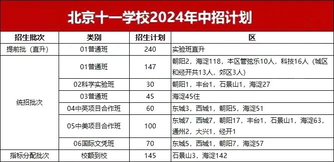 小编为大家整理了十一学校2024年提前批直升计划、统招批次和指标到校批次中的校额到校招生计划。具体如下图所示↓↓↓