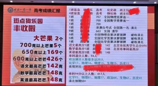 2022年:北大附中高考最高分703分,700分以上有2人,清北裸分达到了18个以上,650分以上同比2021届增长43.90%,区5%以上比2021届增长2.50%,区20%以上比2021届增长33.75%。