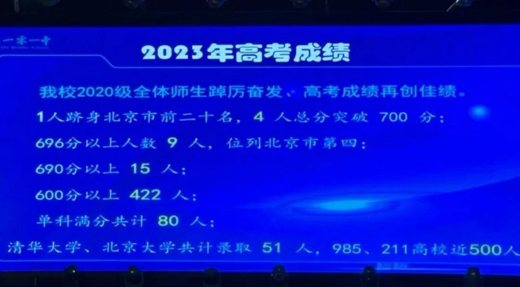 2023年:北京市前20名,北大附中占1人。700分以上共2人,690分以上共11人。
