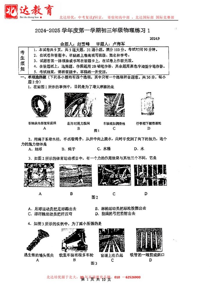 2024北京人大附中初三(上)开学考物理试题出炉,以下是小编为大家整理的相关内容,一起来看: