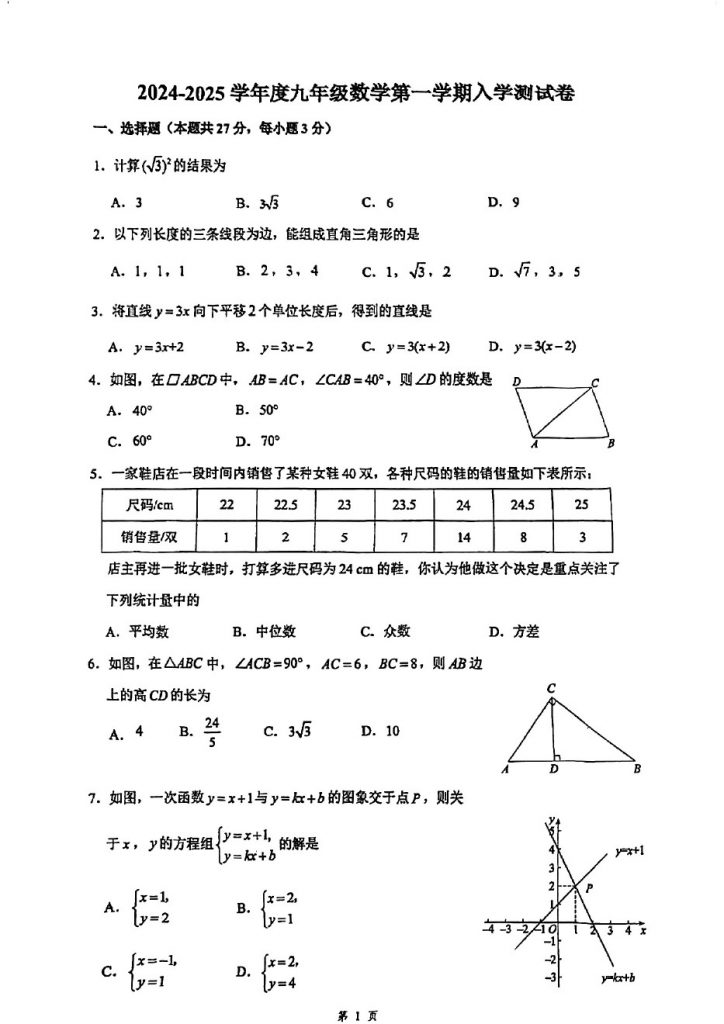 2024北京丰台二中初三(上)开学考数学试题及答案出炉,以下是小编为大家整理的相关内容,一起来看: