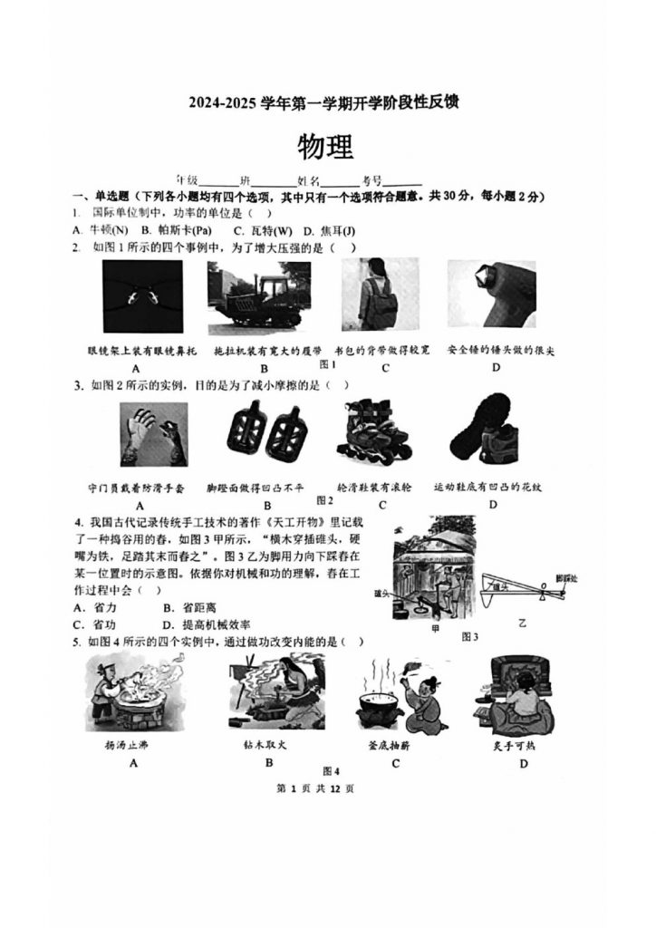 2024北京清华附中初三(上)开学考物理试题及答案出炉,以下是小编为大家整理的相关内容,一起来看: