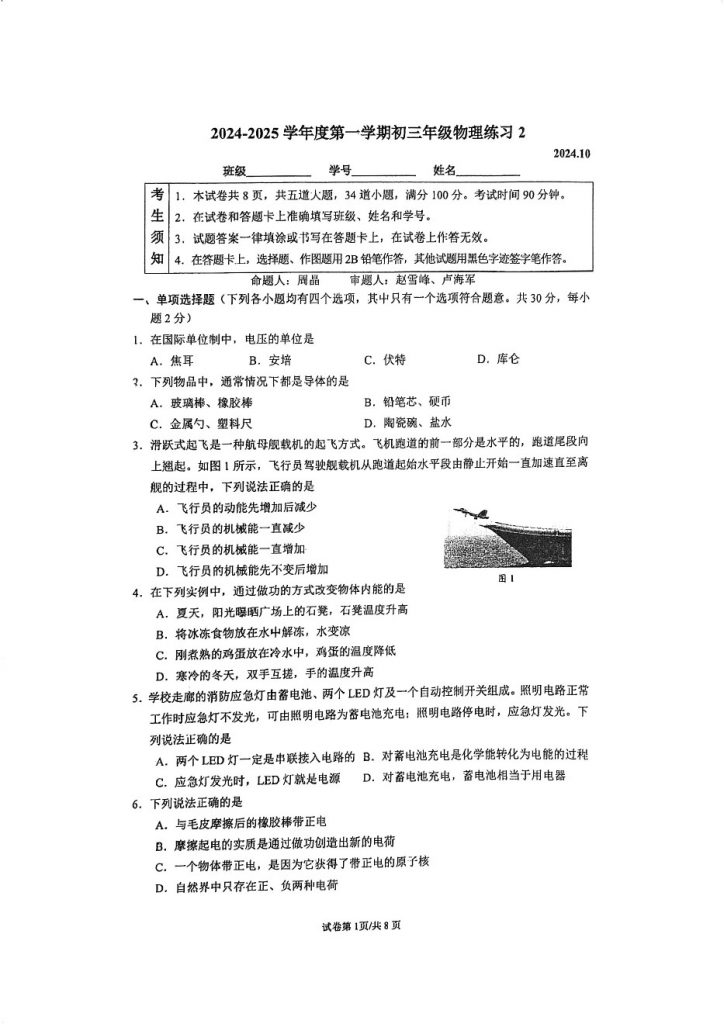 北京2024.10各个学校月考正在陆续进行中,为方便大家对答案、下载练习等小编给大家搜集了2024北京人大附中初三10月月考物理试题及答案,需要的小伙伴赶紧下载练习起来吧: