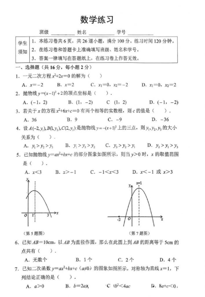 北京2024.10各个学校月考正在陆续进行中,为方便大家对答案、下载练习等小编给大家搜集了2024北京四中初三10月月考数学试题,需要的小伙伴赶紧下载练习起来吧: