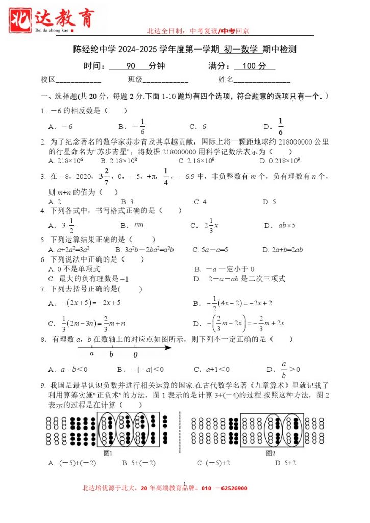 北京2024-2025学年期中考试正在陆续进行中,为方便大家对答案、下载练习等小编给大家搜集了2024北京陈经纶中学初一(上)期中数学试题,需要的小伙伴赶紧下载练习起来吧: