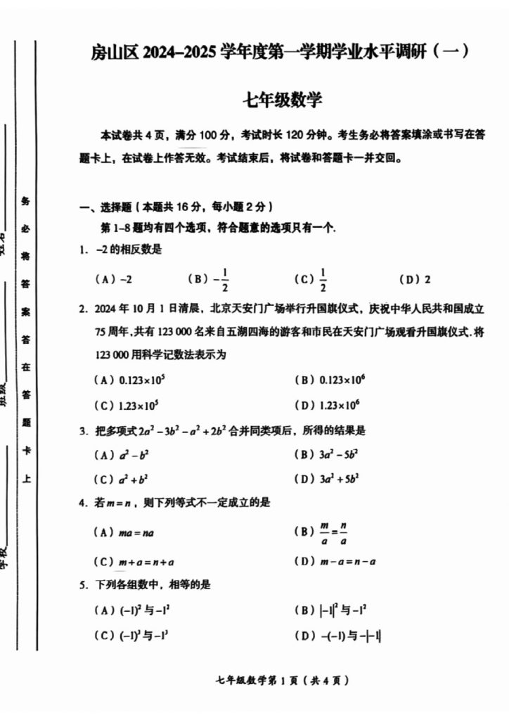 北京2024-2025学年期中考试正在陆续进行中,为方便大家对答案、下载练习等小编给大家搜集了2024北京房山初一(上)期中数学试题,需要的小伙伴赶紧下载练习起来吧: