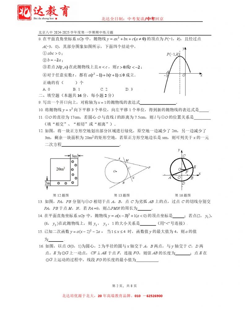 北京2024-2025学年期中考试正在陆续进行中,为方便大家对答案、下载练习等小编给大家搜集了2024北京八中初三(上)期中数学试题及答案,需要的小伙伴赶紧下载练习起来吧: 试题预…
