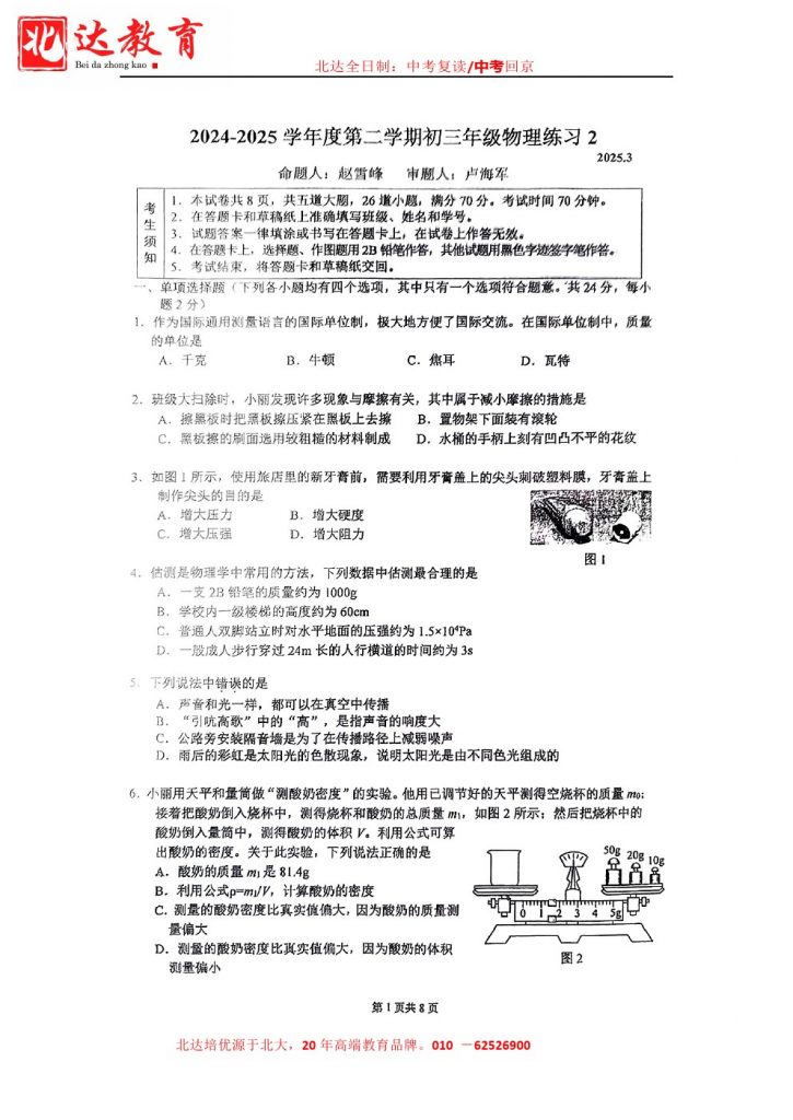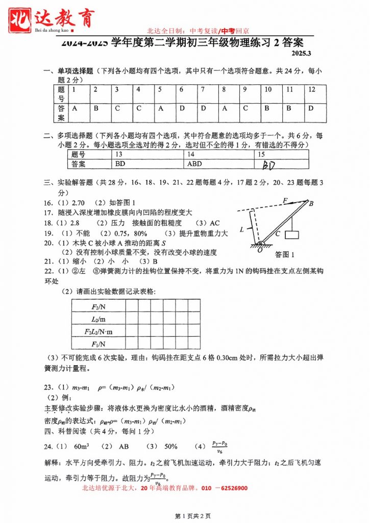 admw360教研组收集整理了2025人大附中初三3月月考物理试卷及答案,分享给大家,快来下载复习吧。 北京admw360全日制学校,中高考复读,外地回京中高考 电话咨询:400-6168182 01…