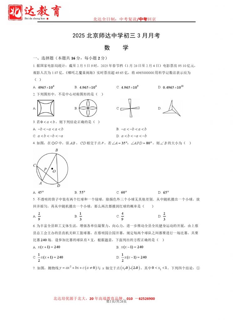 admw360教研组收集整理了2025师达中学初三3月月考数学试卷及答案,分享给大家,快来下载复习吧。 北京admw360全日制学校,中高考复读,外地回京中高考 电话咨询:400-6168182 01…
